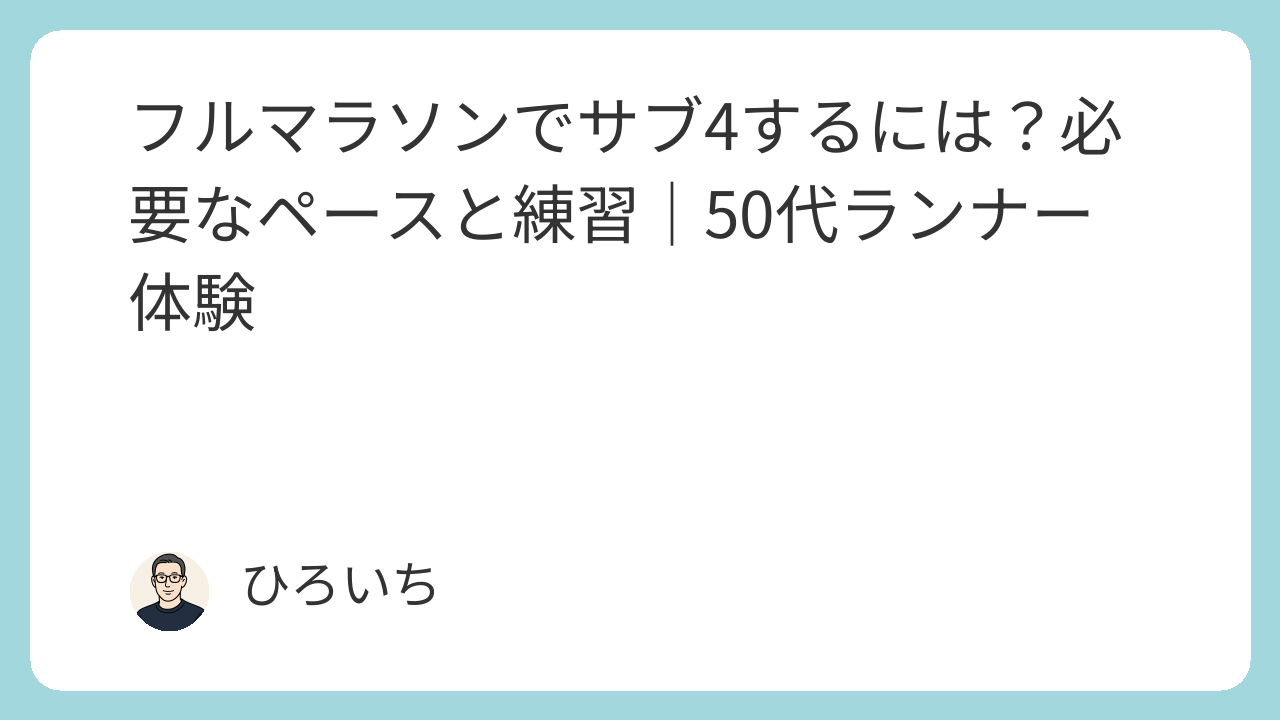 フルマラソンでサブ4するには?必要なペースと練習|50代ランナー体験