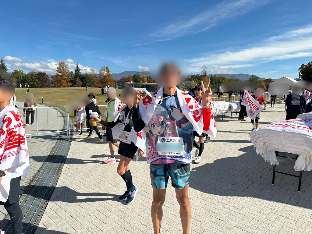 ネットタイムではサブ4だったため、まさか松本でサブ4に手が届くとは思っておらず、うれしさと悔しさが半々の複雑なゴールでした。