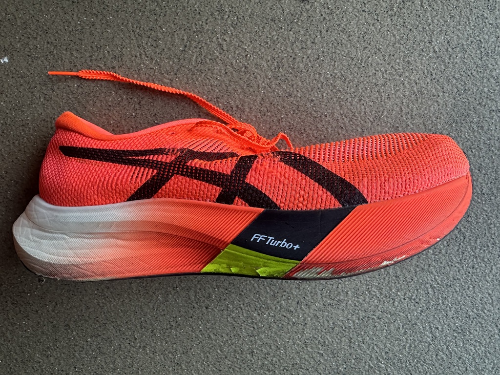 「うわ、軽い」と思いました。例えばゲルカヤノ32と比べると、かかと部分が必要な分しかなかったり、とにかく余分なものを削り、走りに特化したシューズだと思いました。